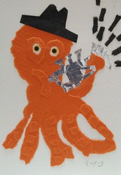 色紙、和紙、銀紙等を切ったりちぎったりした作品 ポストカードサイズ原画 額装なし